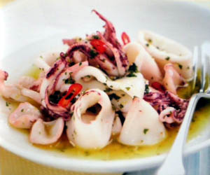 Servite i calamaretti conditi con il succo del limone e il